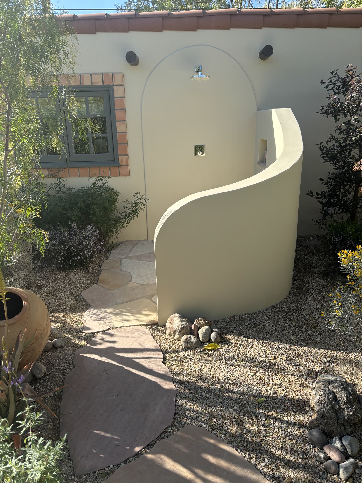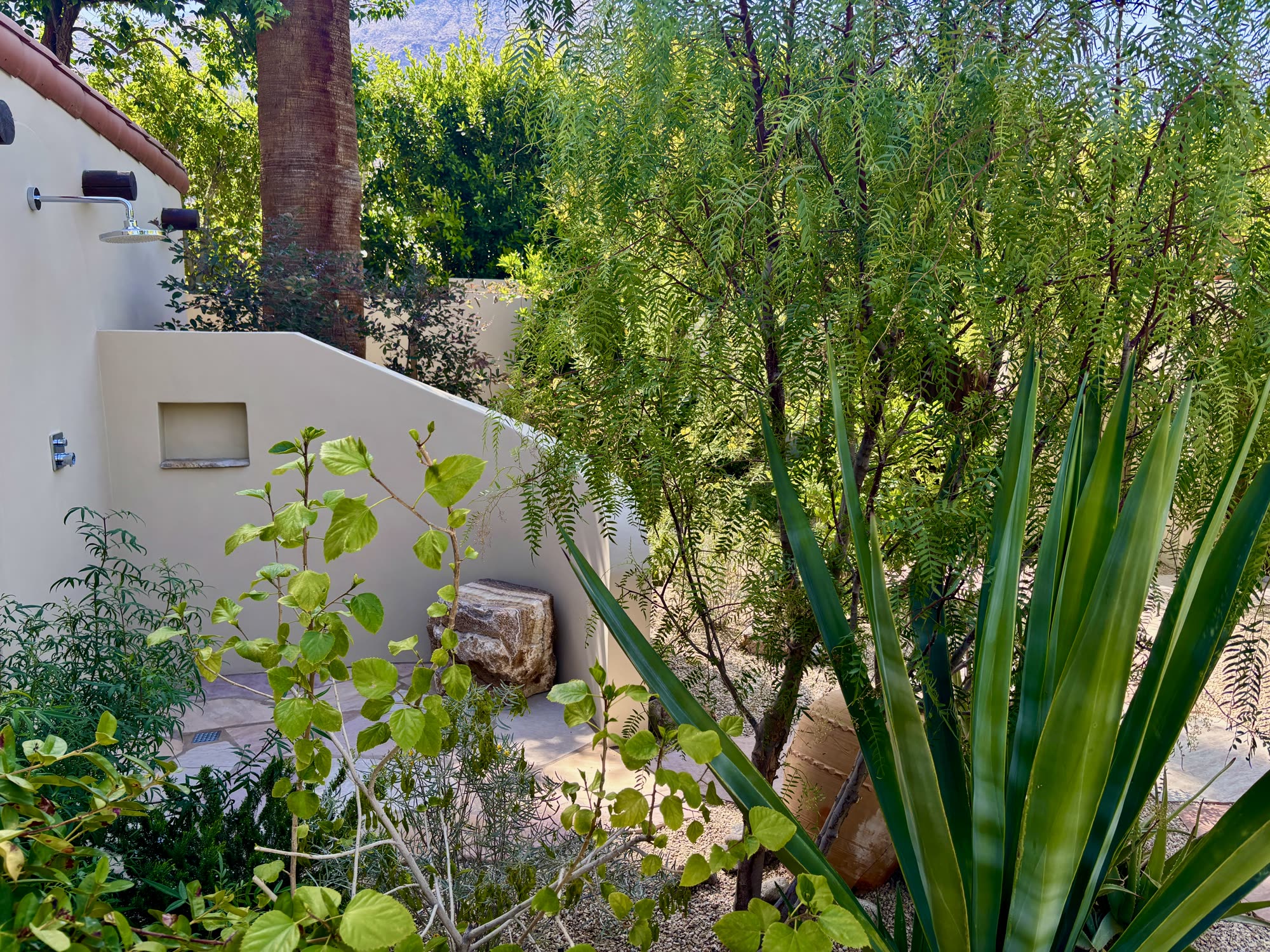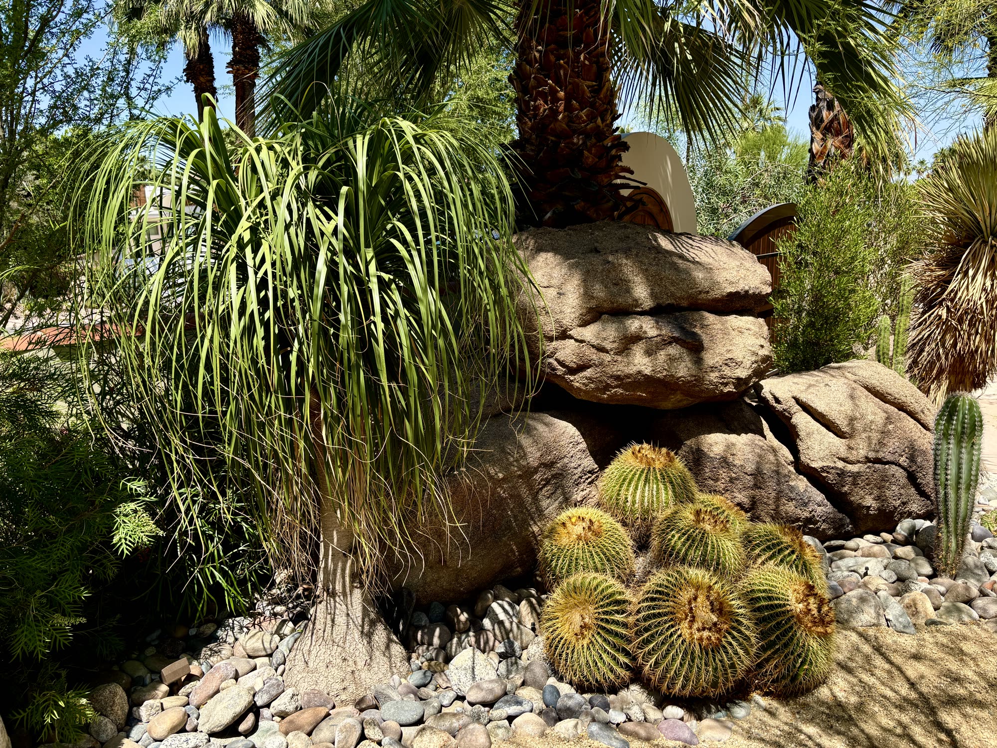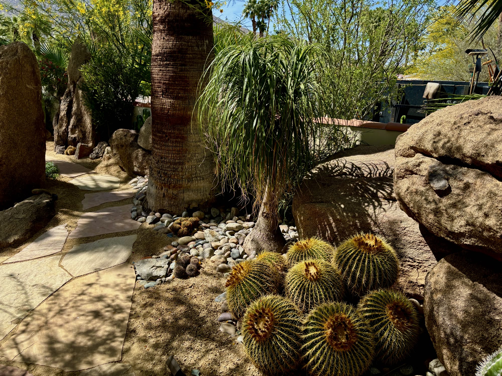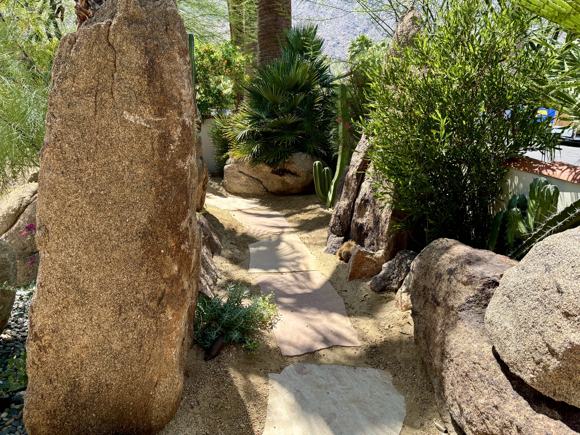 - Local boulders, Native trees and shrubs, Citrus, Palo Verde trees, Acacia, Cactus, Succulents, Flagstone